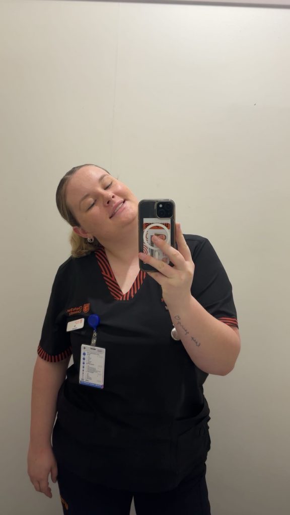 Working in the hospital system is ever-changing. I always pride myself on providing a calm, collected, and open nature so that patients feel that they can confide in me and that I can make their experience better while they are with us. Working in the hospital as an AIN has made me fall more in love with my degree and realise what I can accomplish in my profession as a Registered Nurse (RN). The range of jobs is endless, and there are so many specialties to choose from.