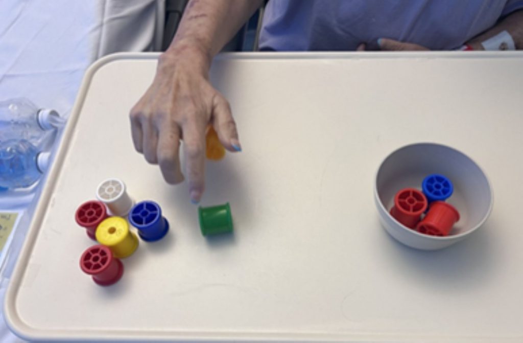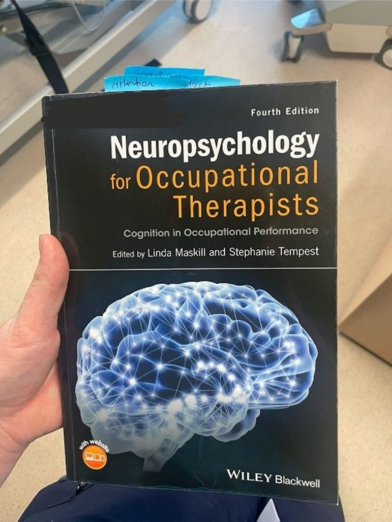 My day-to-day workload includes administration tasks, assisting with therapy sessions, cleaning and tracking equipment, and supporting the OT team wherever needed. I had never worked in admin before (and I’m definitely not tech-savvy), so this has been one of the more challenging parts. Tasks like scanning and uploading documents, creating therapy programs, and writing notes in patient records were intimidating at first, but my confidence grows each week. I have been going to see patients individually to conduct therapy tasks including mobility practice, ADL management, and stroke rehab.