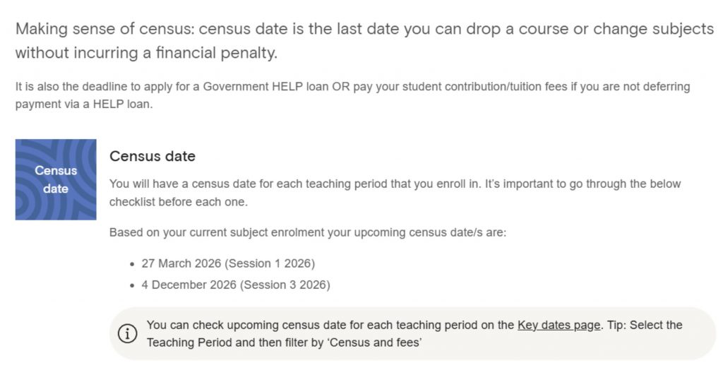Before I started Uni, the only census I knew was the one where the Australian Bureau of Statistics did every five years to gather information for a screenshot of where we are as a nation! But I’ve learned that the census we have at Uni can really shape the direction of your study.
