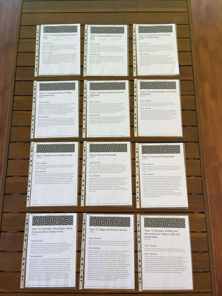 I need to know what is on the journey ahead. In printing out each of the 12 topic overviews and rationales for each subject, I have an exact version in front of me of what to look forward to each week. This provides a clear pathway forward. And I can also work out where the session break fits into this timeline!